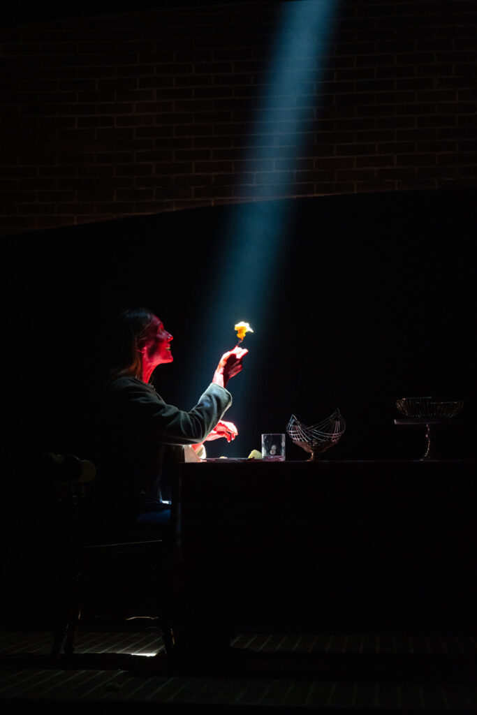 « Je n’avais jamais entendu parler d’Anne Carson, malgré sa renommée internationale. M’avait-elle échappé seulement à moi, ou à tout le public québécois francophone? Pourtant, Autobiographie du rouge est un roman d’exception. Chaque ligne est une flèche; leur addition, un ouvrage insolite où se côtoient monstruosité mythique et amours modernes. Anne Carson provoque des chocs de lucidité. Vous savez, cette sensation, au contact d’une œuvre, de comprendre de façon limpide une vérité insaisissable? Comme Anne Carson n’entre pas dans un moule, il va de soi qu’elle intéresse Création Dans la chambre. Lumineuse singularité : le premier geste de conception ne viendra pas du metteur en scène, Gabriel Charlebois Plante, mais plutôt de sa grande collaboratrice à l’éclairage, Julie Basse, ouvrant par le fait même un chemin de création entièrement nouveau. »