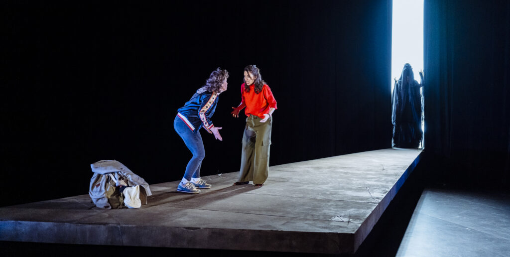 Quand les créatrices de Nomme-moé ont approché Luce Pelletier du Théâtre de l’Opsis, une union naturelle s’est immédiatement créée, comme si la rencontre avait déjà eu lieu, que le langage était commun. Avec la présence à la mise en scène d’Olivier Morin, fidèle collaborateur de la compagnie depuis 20 ans (Oreste, the reality Show, Il campiello, La coopérative du cochon, Le vertige, Peer Gynt, entre autres), il n’en fallait pas plus pour que la coproduction prenne des allures d’heureux mariage. Poursuivant son cycle des territoires féminins amorcé en 2019 avec Les serpents de Marie NDiaye, la directrice artistique de l’Opsis a vu en Nomme-moé la poursuite logique de l’exploration du féminin, cette fois dans une perspective plus féministe et plus mordante que jamais.