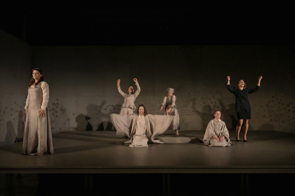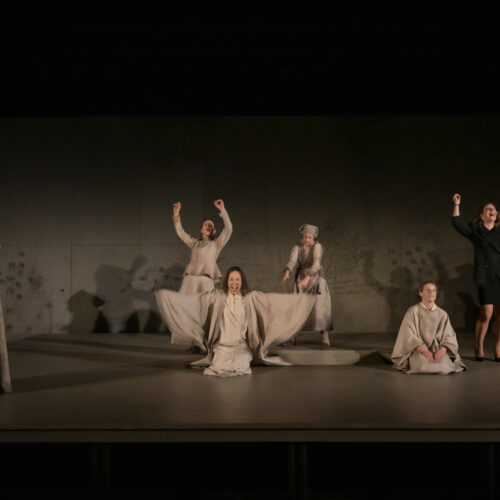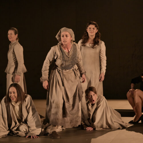 « En octobre 2024, à quelques jours de l’élection américaine, une conversation a ramené Top Girls à mon esprit. Il faut dire que je considère Caryl Churchill comme la plus grande dramaturge vivante, rien de moins. J’ai relu Top Girls au moment où Trump était élu. Tandis que la noirceur du monde devenait indéniable, que mon sentiment d’impuissance prenait une ampleur qui m’inquiétait, j’entrais dans cette œuvre brillante, incisive, farouchement drôle. Miracle de synchronicité, elle donnait corps à ce cri que j’avais de coincé dans la poitrine. Écrit en réaction à l’ère Thatcher, le texte révèle des tares qui progressent : reculs terrifiants de ce qu’on croyait acquis, individualisme rampant et écartèlement douloureux des classes. Surtout, il y a dans ce texte tout l’espace qui me manquait sans que je sache le nommer : celui de la rage et du rire. Les partitions jouissives et exigeantes de Churchill permettent d’exulter, de transcender, de brandir un doigt d’honneur libérateur à notre époque. »